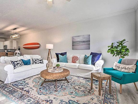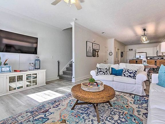 You'll just adore this 2 bedroom 2.5 Bath with a bonus room that is currently used as a bunk room for your quests. The property is located on the beach side of Hwy 98 and just a short walk (600 feet) to beach access. This light and airy townhome has an open floor plan with an easy flow. The living area, kitchen, dining area, half bath and laundry room make up the first floor. Upstairs you have 2 bedrooms, bonus room and 2 full baths. The master bedroom has a balcony with a view of the beautiful Gulf of Mexico. There is a small back yard with room for entertaining or back yard Bar-B-Que. Walk to the beach, restaurants and fishing pier. NO Association Fees! All Measurements, Room sizes and ages are approximate. Please verify if important. All furniture conveys with sale.