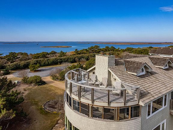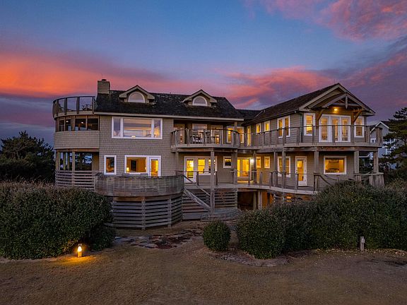 The convergence of style, nature and harmony create a beautiful blend that is the heart of Duck at 104 South Baum Trail. One of only 13 distinguished homes, this 5-bedroom, 5-bathroom, 2-partial bath home with 4,850 heated sq. ft. immerses you in an unparalleled experience within the prestigious Palmer’s Island Community. Serene viewpoints of the expansive Atlantic Ocean to the picturesque Currituck Sound, this residence epitomizes coastal luxury with a layout designed for both privacy and shared enjoyment. Capturing the essence of its extraordinary surroundings, the property offers a plethora of outdoor living spaces with imported hardwood Ipe decks, covered porches and a roof top deck for taking it all in. The outdoor areas seamlessly blend with the natural surroundings, featuring landscaping that enhances the coastal atmosphere. With a spacious backyard and private beach access to uncrowded shores, this property has the potential to serve both as a private retreat and an event space. Features such as hand curved top rail Ipe and CCA treated shake roof add a touch of class. The Covered grand entryway, separate Dry Entry, Foyer, Dual outdoor showers, multiple large storage areas, owner lock ups, and 4 of the 5 bedrooms being En-Suites, with their own individual balconies or deck area access creates a feeling of each one functioning as an individual retreat. As you ascend to the top floor via red-oak Hardwood Flooring that carries throughout, you step into a haven of elegance that transcends typical living experiences you will be mesmerized with panoramic views of Sunrises over the Atlantic Ocean to the East and Sunsets over the Currituck Sound to the west. Whether you find yourself in the top-floor en-suite bedroom, fully remodeled 2021 kitchen w/ wet bar, wine fridge and ice machine, dining room with T&G ceilings and surrounding picture windows, long hallways, or expansive family room, this distinctive viewpoint feature provides an unparalleled backdrop, transforming every moment into a visual masterpiece. Describing the full impact of the sensory overload from these top-floor views is as challenging as it is beautiful. Furthermore, residents of Palmer's Island enjoy privileged access to resort-level amenities at The Sanderling Resort. Delight in the culinary offerings of Kimball's Kitchen, the area's only 4 Diamond-rated restaurant. Indulge in leisure at the tennis courts and swimming pools (the option to pay for access to the Sanderling Community's tennis courts, pool, clubhouse and gym). The exclusive use of the sound-side dock for paddleboard launching or birdwatching further elevates the coastal living experience to unprecedented heights. Discover a residence where every detail reflects the essence of the Outer Banks, and where 360 Degree ocean-to-sound views seamlessly become an integral part of your daily life. Welcome to a lifestyle that transcends expectations, where luxury meets coastal serenity.