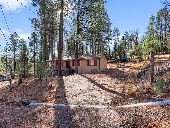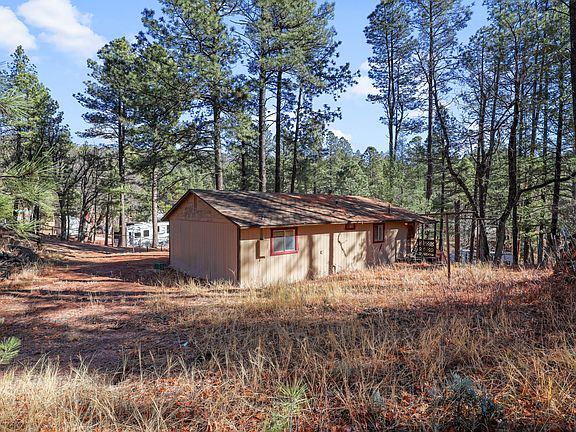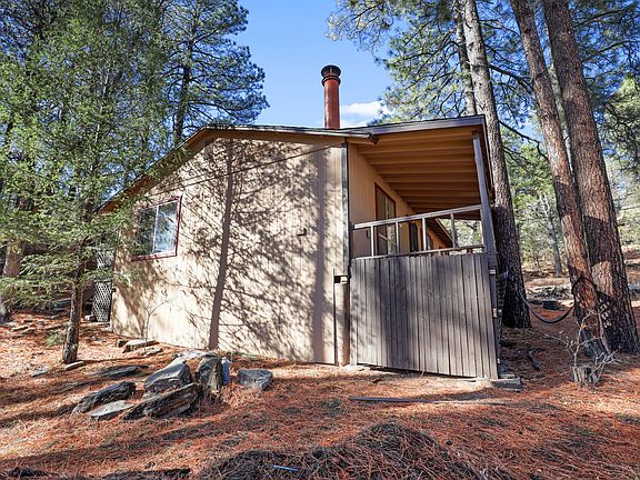 Peaceful mountain cabin with beautiful views from the front covered deck. This cabin offers 2 large bedrooms, a large bathroom/laundry area and spacious living area. A wood fireplace will keep you warm (central source of heat) and there is plenty of space for your RV/toys or build a garage on the .25 acre corner lot. Nearby creeks, hiking trials, Rim lakes with abundant wildlife in the area. Home is being sold furnished and AS IS. Envision putting your own touches on this cabin with a little sweat equity. Would make a great mountain retreat or full-time residence.