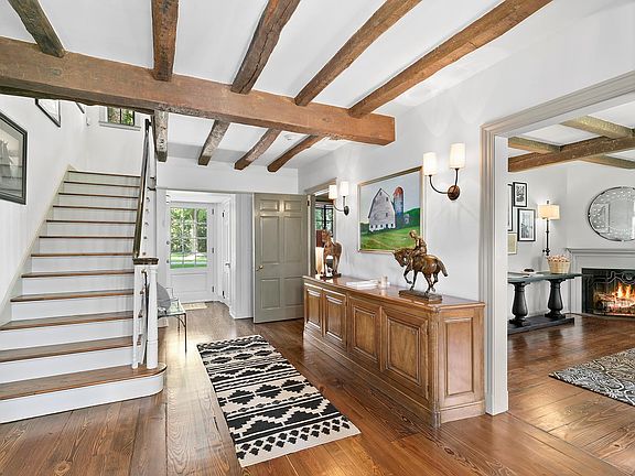 This classic, center hall Colonial Revival is a slice of Americana steeped in rich history with modern amenities of comfort and easy living. Built in 1941 for J.J. Haggerty, one time part owner of the New York Giants baseball team, and later owned by NBA legend Dave DeBusschere, this timeless, gated estate offers 6 bedrooms and 5.5 bathrooms on 2.4 acres of mature landscaping with heated salt water pool and Har-tru tennis. Wide-plank wood floors, hand hewn beams, and 5 wood-burning fireplaces exude charm and grace, coupled with an impressive open-concept chef's kitchen with high-end appliances. Classic covered porch, brick patios, and sprawling grounds offer plenty of outdoor space for entertaining - everything one could possibly desire in a chic and stylish retreat.