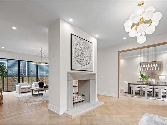 First-floor in-law suiteLimestone double-sided fireplaceFully finished basementFloor to ceiling windowsLush landscapingThird floor bedroom suitePrimary bedroom retreat