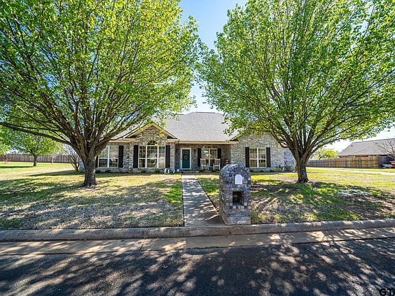 Lovely 3/2/2 brick home is located in an upscaled neighborhood minutes from historic downtown Mt. Vernon. You enter the home into a spacious family room with an additional living area. The family room features an electric stone fireplace with access to the covered patio and back yard. A nice formal dining area is located to the right of the entrance. The kitchen features a work island, stainless appliances, granite counter tops, pantry, abundant cabinetry and counter space. The kitchen bar separates the kitchen from the breakfast area which overlooks the fenced back yard. The luxurious primary suite has a sequestered office for your convenience. The spa like bath offers a soaking tub, separate shower, marble counter tops, tile floors and walk-in closet . The oversized laundry room has many amenities which consists of a sink, built in ironing board, room for a freezer, tile floor, ample cabinetry and work space. The 2 car garage has additional work area with storage closet which exits to the back yard. The open concrete drive way provides additional space parking space and room to play basketball. A sizable back yard is great for kids and pets to play. The home has been well maintained and is move in ready. The color palette and floor plan is desirable for your family to enjoy. Mt. Vernon is only minutes from the Tri-Lake area of Cypress Springs, Bob Sandlin and Lake Monticello. Escape to beautiful East Texas and live your dream life!