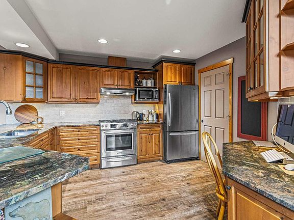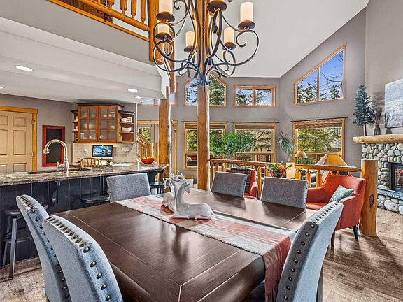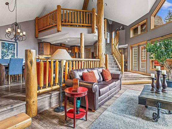 This residence embodies the perfect blend of luxury, comfort, and breathtaking natural beauty. This stunning 4-bed/4-bath offers an unparalleled living experience with its thoughtfully designed spaces and prime location. The heart of this home is the expansive great room, featuring a sunken living area that creates an intimate and cozy atmosphere while still maintaining an open and airy feel with large windows that frame the surrounding landscape. This space is perfect for relaxing with family and entertaining guests, with its impressive design and seamless connection to the outdoors. Adjacent is the gourmet kitchen with stainless steel appliances, ample counter space, beautiful cabinetry and a pantry. The open-concept design ensures that the cook is never isolated from the action as the kitchen flows effortlessly into the dining area, where you can enjoy meals with a breathtaking back drop. The primary is on the main floor, featuring a luxurious five-piece ensuite and walk in closet. Retreat to the upper level for the 2nd family room and 2 bedrooms while the lower hosts another bonus retreat and bedroom. End the perfect day surrounded by a private fire pit! Don't miss the opportunity to make this mountain retreat your own.