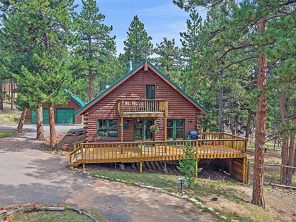 Welcome to 104 Six Bits Street, where rustic charm meets modern convenience in Bailey! This delightful 3-bedroom, 2-bathroom abode sprawls over 2,432 square feet, nestled on a generous 3.42 acre lot. It's not just a home; it's your new adventure. Step inside to find a beautiful open concept living and dining rooms with vaulted ceilings, a wood burning stove, stone accents, perfect for chilly Colorado evenings a cozy affair. The kitchen area with a breakfast bar is a chef's delight, featuring stainless steel appliances including a range, dishwasher, disposal, and refrigerator. The upper level boasts a versatile loft, perfect for a home office, reading nook, or hobby space, accompanied by an inviting bedroom that promises tranquility and privacy. The lower level is equally impressive, offering a spacious family room, an additional bedroom, and several utility rooms complete with bathroom amenities, making it ideal for separate spaces. Equestrian enthusiasts, rejoice! This property features a large 3-stall horse barn, a loafing shed, and a paddock that promises ample space for your equine companions. The round pen is perfect for training sessions, and the comprehensive fencing ensures safety and security. Plus, a fenced dog yard offers a dedicated area for your canine friends to frolic freely. The versatile outdoor options provide ample space for gatherings. And let's not forget the inviting deck and private balcony — ideal for sipping your morning coffee while taking in the mountain air.