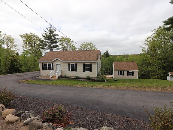 This remarkably clean and ready-to-move-in home is on two pretty and private acres and it has a west facing deck for watching great sunsets. Built-in 2015, it only got better with the present owner's improvements. Well taken care of, and fully inspected this past April, and we are happy to provide the report t you. Just 4 miles to downtown Sanford and 10 to Rochester. The seller tells me he gets to the Portsmouth traffic circle in 35 minutes. There are lots of great features,including an open-concept kitchen-dining-living area, a breakfast bar at the island counter, laminate and carpet flooring, expansion possibilities in the basement, an additional half bath in the basement, a huge shed, and an ATV trail to a 400 feet deep yard full of trees. AC heat pump by Mitsubishi, a basement wood stove, a high-efficiency Rinnai wall-hung boiler that makes this home easy to heat. Newer pavement provides lots of parking for friends and guests.