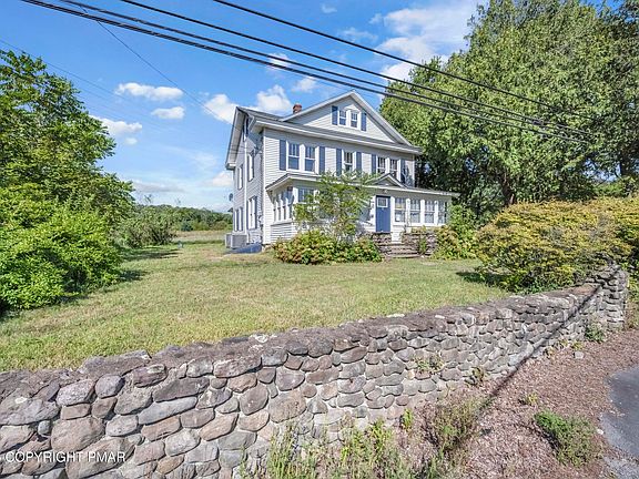 Each bedroom is generously sized, while all three bathrooms have been tastefully renovated with today's finishes. Outside, enjoy a private setting surrounded by the natural beauty of the Poconos—perfect for relaxing or entertaining. Conveniently located near shopping, dining, hiking, skiing, and major commuter routes, this home offers the best of history, charm, and modern convenience. Also, zoned B1 - Mixed Use/Village/Neighborhood Business