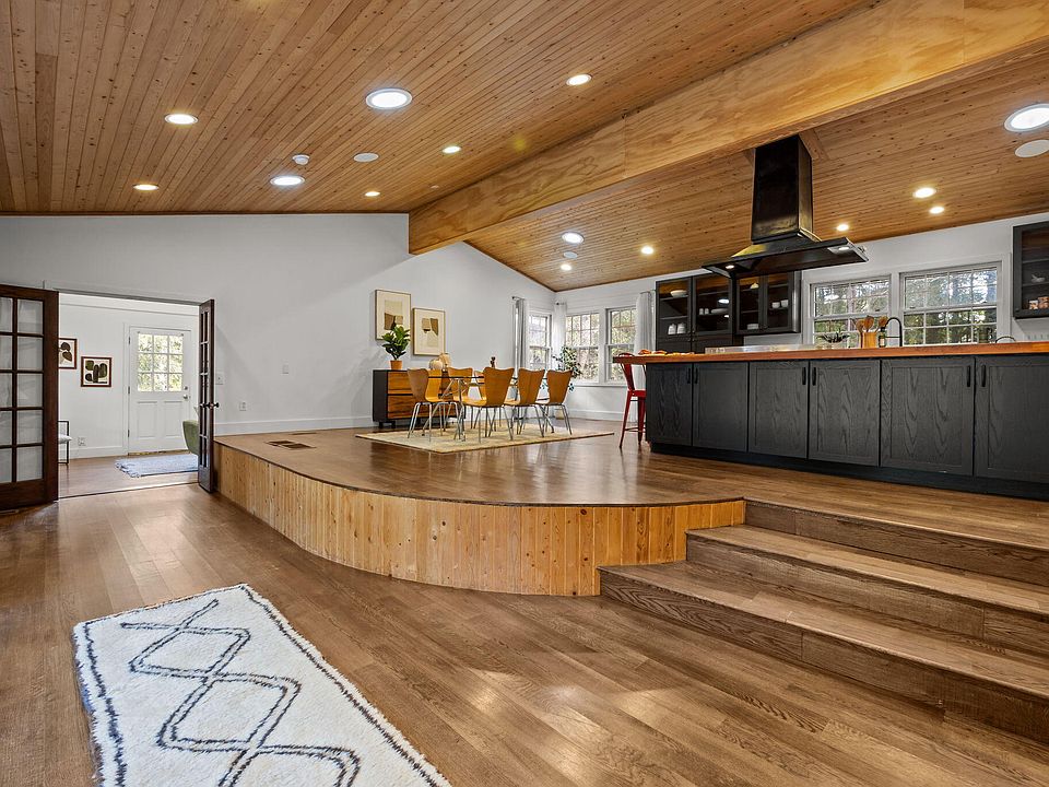 Mid-Century Modern Retreat in the Heart of Carrboro Quintessentially Carrboro, this home built in 1962, is a true mid-century gem, tucked away for privacy yet just minutes from the Carrboro Farmers Market, Chapel Hill, and numerous nature trails. Surrounded by mature trees and nestled in a community-oriented neighborhood, the property blends architectural character with thoughtful updates. There's nothing else like it. Inside you'll find soaring beadboard cathedral ceilings, a dramatic curved dining room, and a flexible floor plan. The chef's kitchen features Thermador appliances, including a refrigerator, a 6-burner gas range, and double dishwashers. There's a sunlit room on this floor with a separate entry, which could serve as a lovely study, sunroom or yoga space. A few steps up from the main living area, you'll find the primary bedroom suite with built-ins, a huge walk-in closet, and a sizeable bath with separate standalone tub and shower. Two more bedrooms are on this floor, sharing a recently updated bathroom. A few steps down from the main floor, you'll find a cozy family room with a wood-burning fireplace and built-in shelves. There's another renovated bath on this floor, laundry room, bedroom #4 and another room that could serve as a office, craft room or artist's space. The front and back yards are both large! Plenty of room to roam. There's a huge covered front porch, a slate walkway, a rear brick patio with an arbor, and a brand-new roof (as of 2023). The added bonus - an income generating apartment! Above the detached two-car garage includes a beautifully renovated apartment with its own private deck and private yard. It's ideal for guests, work-from-home, or income earning. One bedroom, full bath, plus living room. It's ready to go - all appliances convey including fridge and washer/dryer. Recently leased through Airbnb, it has earning potential of $2,600-$3,200 per month. Long term furnished rental rates are approximately $2200/month. Additional Features: Tankless on-demand hot water in the main house Built in speaker system Whole house vacuum Unfinished basement for storage or future expansion Tucked away from the road, on 0.69 acres, this one-of-a-kind property combines mid-century style with income potential - all in one of Carrboro's most sought-after locations.
