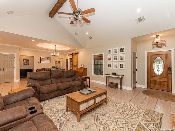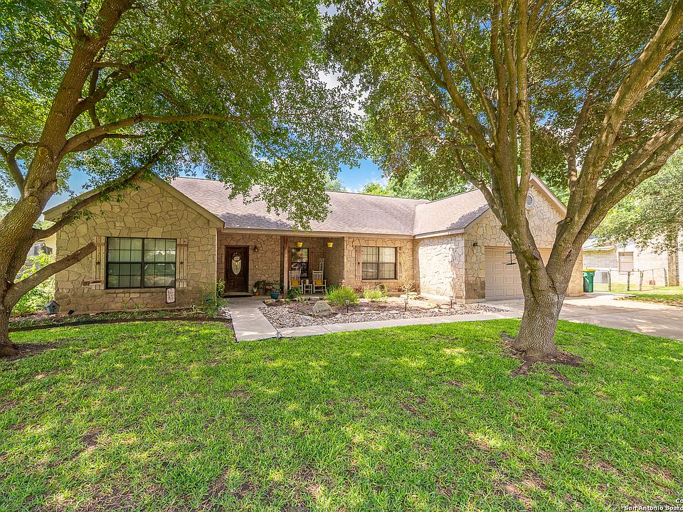 Beautifully updated home for sale in established subdivision of Country Village in Castroville Tx! This 3 bedroom 2 bathroom house with dedicated office is 1923 sqft and situated on a sizable cul-de-sac lot. Interior of home features living room with vaulted ceilings and very recently updated kitchen and bathrooms. You will notice many custom touches throughout, such as upgraded trim and accent walls, as well as built in cabinetry in living room and office. You will love the backyard, boasting a covered back porch and plenty of yard space...perfect for entertaining!