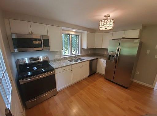 Beautifully remodeled condex located in North Shirley. Many brand new amenities include granite countertops, kitchen cabinets and Frigidaire Gallery stainless steel kitchen appliances to name a few. Freshly painted throughout and ready to be enjoyed. Tranquil, wooded location nestled back from the street. Tons of private yard space. Plenty of closets and a large, open basement with plenty of storage space.