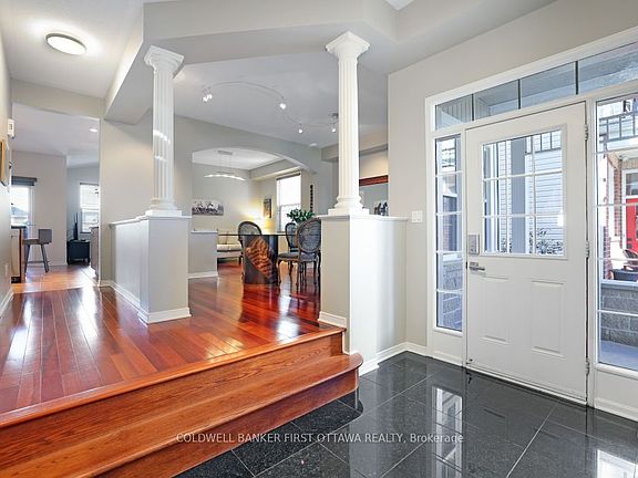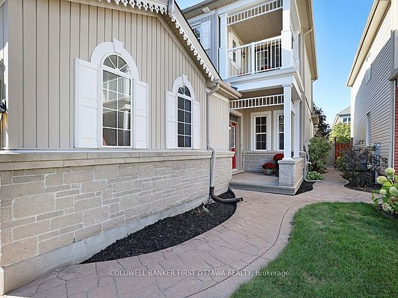 OPEN HOUSE!!! SUNDAY, NOV. 16th 2:00-4:00 Welcome to this inviting two-storey home in desirable South March, just minutes from Kanata North's thriving hi-tech hub. Designed for comfort and style, this residence features hardwood flooring throughout both levels and a thoughtfully designed layout. The eat-in kitchen offers an abundance of cabinetry with, opening to a deck and beautifully landscaped, low-maintenance backyard accented with river rock and concrete walkways that extend from the front yard. A fully fenced yard provides privacy and space to relax or entertain outdoors. Upstairs, the custom oversized primary suite impresses with a luxurious upgraded en-suite and spacious walk-in closet. The second bedroom opens onto a balcony, while the third bedroom offers generous proportions. The family room features a dramatic vaulted ceiling and a gas fireplace framed by a slate backdrop, creating a warm and inviting focal point. A double-car garage with inside entry adds everyday convenience to this beautifully maintained home. Sellers have flipped how they use the living and dining rooms.