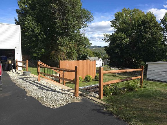 **Immaculate Ranch on Corner Lot with Mountain Views** Motivated seller!! This beautifully maintained ranch-style home is move-in ready and filled with thoughtful updates. Sitting proudly on a spacious corner lot, the property combines comfort, efficiency, and style. Step inside to find a remodeled kitchen featuring butcher block countertops, stunning laminate floors, and a welcoming living room complete with a brand-new pellet stove and convenient remote blinds. The main bathroom has been tastefully renovated, offering a step-in shower and relaxing jetted tub and laminate floors, while the primary bedroom includes a private half bath for added convenience. Entertain with ease on the oversized back deck or enclosed porch, both ideal for enjoying the surrounding mountain views. A new 16x20 sunsail awning provides the perfect shady retreat, while the fenced-in area out back ensures privacy. Stove, fridge, washer and dryer included in sale. Modern upgrades throughout include mini splits for cooling, a 4-year-old furnace, brand-new hot water tank, 200-amp circuit panel with whole house surge protection, and spray-foamed sills in the basement for energy efficiency. Low-maintenance vinyl siding, a durable metal roof, and recent improvements inside and out make this home truly turnkey. Don’t miss your chance to own this exceptional property that blends charm, comfort, and practicality in one perfect package!