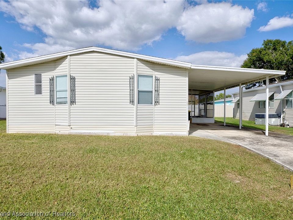 Discover this well-maintained 2-bedroom, 2-bath mobile home on owned land in the quiet, peaceful Thunderbird Hill South 55+ community. Featuring a split floor plan, fresh paint, new vinyl plank flooring, updated fixtures, and a heavy-duty storm door, the home boasts bright kitchen cabinets with a generous amount of storage and a breakfast nook that opens to a screened patio. The master suite offers two spacious closets, a walk-in shower, and generous counter space, while a 28×16 carport with outdoor storage adds convenience. Centrally located near shopping in a beautifully kept neighborhood, it’s perfect for quiet year-round or seasonal living—come see it today!