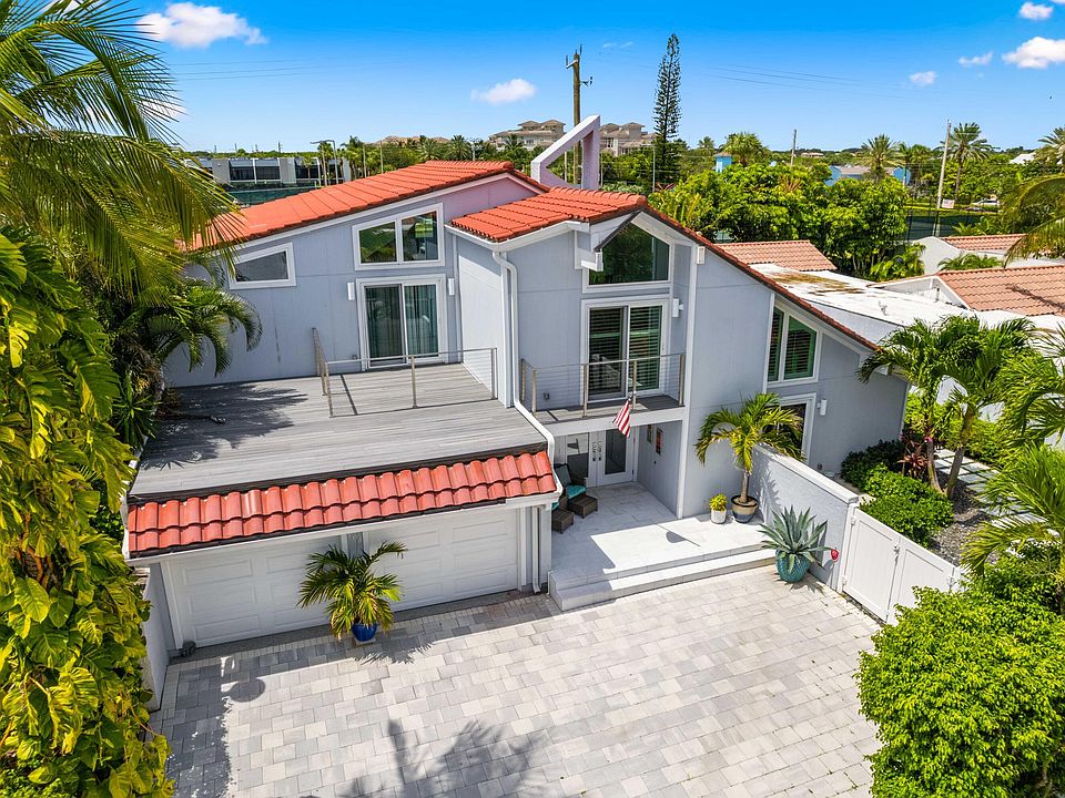 Experience luxury coastal living in one of Palm Beach County's most coveted gated communities--Ocean Walk Place. This fully renovated, turnkey residence is ideally situated on a quiet cul-de-sac with desirable southeast exposure and a beautifully landscaped backyard oasis.Boasting 2,642 square feet, the home features 3 bedrooms, 3 baths, and a bright open floor plan enhanced by soaring redone ceilings, a floating staircase, new flooring, and a refurbished wood-burning fireplace. Renovated in 2020 by a top designer and high-end remodeling firm, no detail was overlooked--from new Hardie board siding and impact windows to a spacious laundry room and 2-car garage.The custom kitchen is a chef's dream with designer quartz surfaces, custom cabinetry, and premium Wolf, Sub-Zero, and wine refrigeration. The expanded primary suite includes a sitting area, dual balconies, a massive custom closet with island, and a spa-inspired bath with soaking tub and frameless shower.