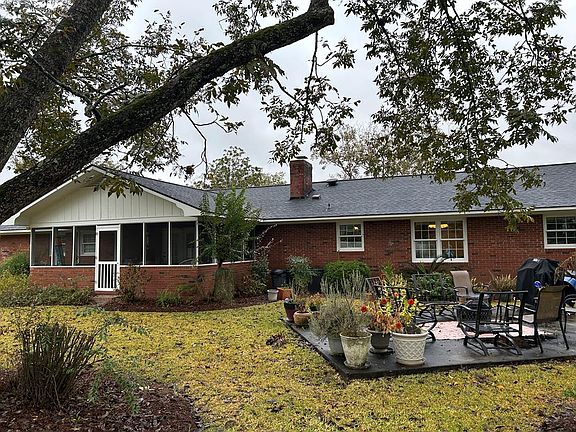 You'll be charmed by the patina of this wonderful house! Brick exterior. Delightfully landscaped yard features patio shaded by pecan trees and a relaxing screened porch. Dog pens w/ septic tank. Open floor plan with plenty of space, fireplace, built-in bookcases, dining room, kitchen has brick pavers, Corian countertops, breakfast nook. Wood floors, Roof new in 2025, 2-car carport with great storage. Sprinkler system. All appliances will remain, including washer/dryer. 2 water heaters Call Nancy to tour this lovely home. 912-293-3588.