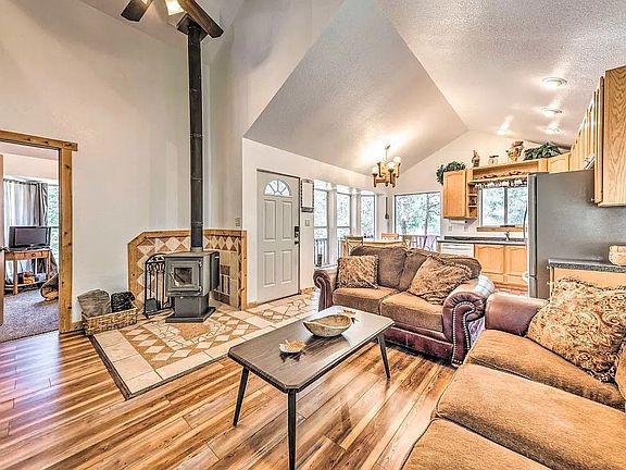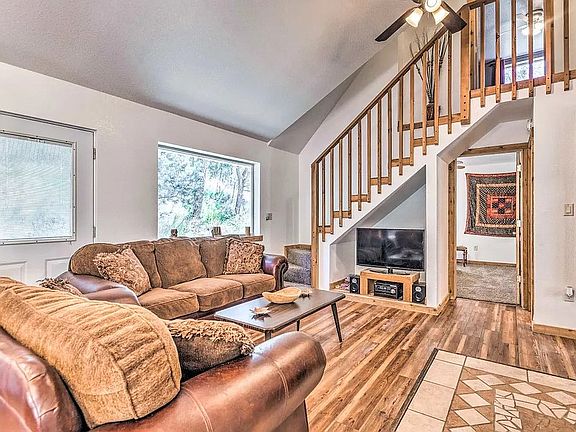 Two 1/2 acre adjoining lots providing perfect seclusion, yet located minutes from town. New carpet, new paint and new flooring. Fully furnished. Storage shed behind house. 300 sq. ft. basement for storage or shop. Private deck with hot tub. Plenty of parking for RV or trailers. Subdivision on it's own well water system.