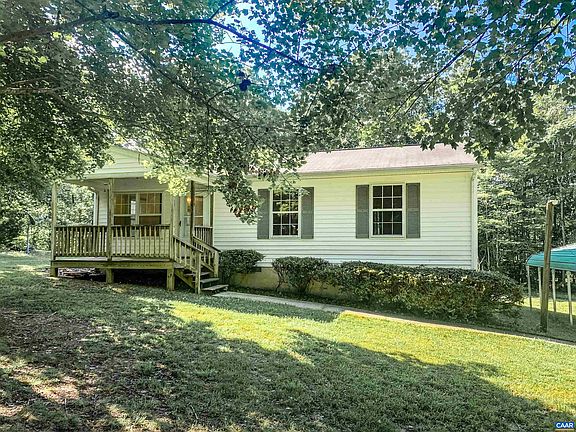 Incredible opportunity to own 2 acres and a lovely 3 bedroom, one and a half bath one level living ranch-style home just a few minutes from the historic town of Palmyra! New stainless steel refrigerator, gleaming wood floors. Enjoy your morning beverage on your covered front porch overlooking the large front yard. Back porch overlooks generous back yard perfect for pets and play. Property backs up to large wooded area making this a very peaceful setting. One owner. Conveneient to Zion Crossroads, shopping, entertainment, medical, and dining. One year buyer home warranty conveys with acceptable offer.