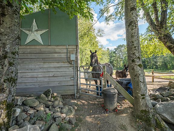 Wonderfully updated split-level wiset on 2.89 open acres (known as Broken Brook Farm) a true "Hobby Farm" for animal enthusiasts! This amazing the property is equipped with a horse barn complete with water and 30 amp electric svc, a fenced corral, and a 12/x12 chicken coop. Located in the picturesque town of Bethlehem, renowned for its seasonal charm, this timeless, country-chic 4-bedroom home offers an expansive open layout that is both elegant and inviting. The main level boasts soaring beamed ceilings that flow seamlessly from the living room into the dining area, along with a spacious kitchen featuring brand-new appliances and a cozy breakfast nook. Upstairs, the beautiful primary suite includes a newly renovated ensuite bath, complemented by two additional large bedrooms that share a second full bath. The lower level features a generous family room with a wood-burning fireplace, a fourth bedroom, a stylish powder room, and walkout to the patio. The true highlight of this property is its exceptional exterior space-perfect for entertaining and outdoor living. Enjoy peace of mind with upgrades including a new roof with gutter guards, windows, siding, and Trex decking. With stunning landscaping, abundant space for gatherings, and direct access to Bethlehem's many equestrian trails and scenic amenities, this versatile property offers flexible uses ideal for animals, storage, workshop space or creative hobbies.