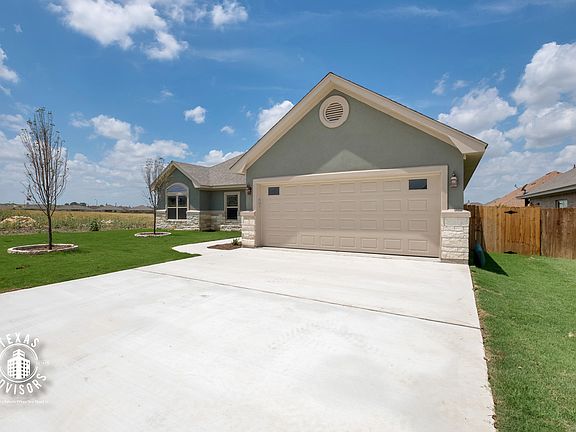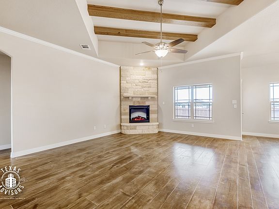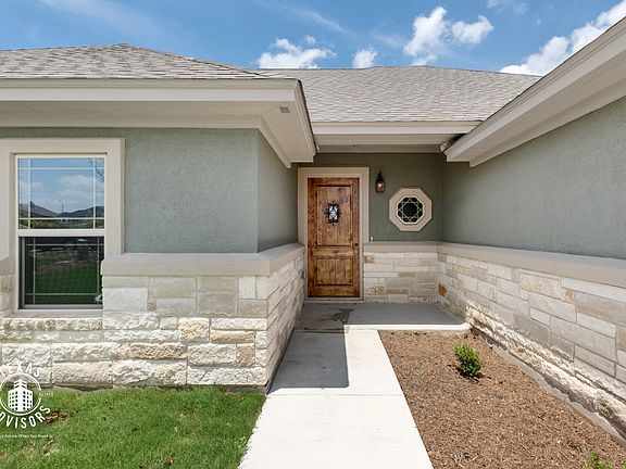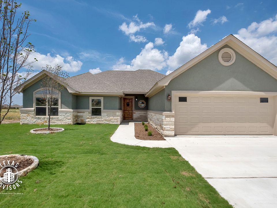 This charming single story 4 bedrooms, 2 bath, 2 car garage home in The Home Place of Jarrell is bursting at the seams with attractive curb appeal and craftsmanship. Walk in and you will be in awe of the etched stained concrete floors, extensive crown molding, high ceilings, wood beams and overall high-end quality that surrounds you. The kitchen offers white subway tile, granite tops, stainless steel appliances, and custom wood cabinets. Other stand out features include an oversized living area with corner fireplace, granite tops and separate vanities in the master bath, a large soaker tub and separate shower in the master bath, gorgeous stucco and stone exterior design and so much more! This home also includes a full sprinkler system and privacy fence. Call today to schedule your showing! 4 photo staged with virtual furniture, no other modifications made.