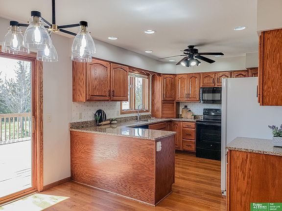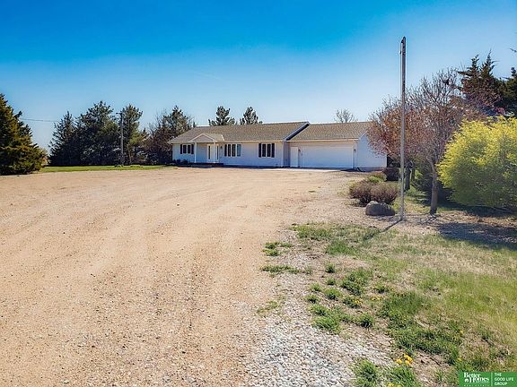 Welcome to this custom ranch style home on a private acreage near Trumbull. The eat-in kitchen offers an abundance of cabinetry, dedicated pantry, granite countertops, wood flooring, updated appliances and light fixtures. The main floor living room has lots of natural light, opening with french doors to a formal dining that could be used as an office. The master has dual closets, ensuite bath with a large vanity and oversized linen closet. The LL offers a large family room, rec room, 3rd bedroom, ¾ bath, flex room, and a gym/office that could be a potential 4th bedroom. The garage is heated with a walk-up attic for additional storage. Keep your lawn green with the underground sprinklers and enjoy the view with a level backyard and mature landscaping from the oversized deck. A backyard 220v connection is available for a future hot tub. Low property taxes. Doniphan-Trumbull Schools. NEW: Roof, Gutters, Furnace, A/C, Water Filtration & Softener, and paint throughout.