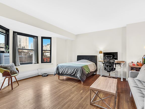 This spacious and inviting studio offers the perfect balance of comfort and convenience. Located in a full-service building with a 24-hour doorman, elevator, and laundry on every floor, the apartment is large enough to accommodate a king-size bed, desk, sofa, and entertainment setup. A dining area can easily be arranged just outside the windowed kitchen, creating a cozy spot for meals.