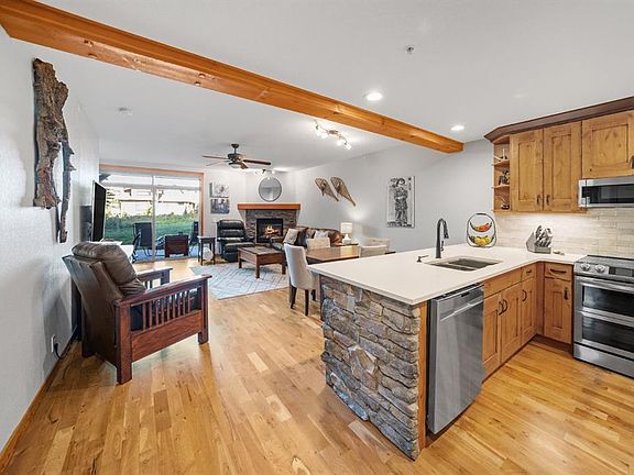 West facing walk-out patioPanoramic viewsContemporary touchesStone fireplaceRefreshed flooring