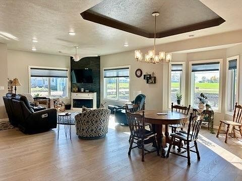 Double-car garageInviting gas fireplaceSpacious bedroomsExpansive windowsVersatile den