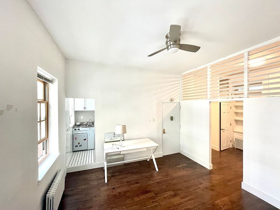 Most Charming Studio in the West Village Separated Nook for placing your bed so living space is separate Built in shelves Fits a Large L-Shaped Couch with coffee table, and TV Stand Space for a dining table Excellent Natural Lighting Message today to set up a viewing!