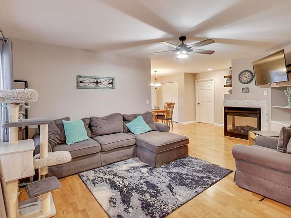 Discover easy, comfortable living in this beautifully updated end-unit ranch tucked inside the highly desirable Ogden Falls community-attending the award-winning Oswego East High School. This ground-level home offers an inviting open-concept layout filled with natural light and thoughtful upgrades throughout. Step inside to a bright, welcoming living area featuring new lighting, Decora switches, subway tile accents around the fireplace, fresh paint, and stylish fixtures that give the home a crisp, modern feel. The cozy three-sided gas Heatilator-style fireplace creates a warm focal point, perfect for relaxing evenings or hosting guests. Just off the dining area, sliding glass doors open to your private patio-a peaceful spot to unwind or enjoy a cup of coffee. The well-equipped kitchen comes complete with all appliances included, and the convenient mudroom/laundry space (washer and dryer stay!) connects directly to the attached two-car garage. The spacious primary bedroom offers both comfort and convenience with two separate closets and a private ensuite featuring updated vanity tops, new faucets, and sleek glass shower doors. Fresh new carpet was just installed, and a new HVAC system (2021) ensures year-round comfort. Located close to shopping, restaurants, and quick highway access, this home blends style, convenience, and comfort into one wonderfully move-in-ready package.
