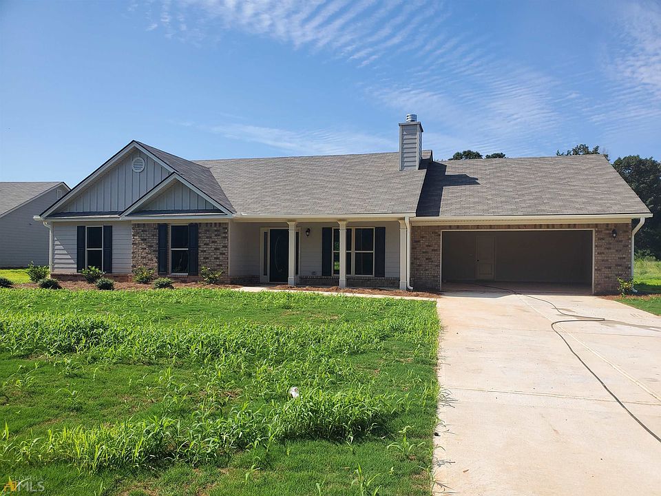 Craftsman style ranch, 4 bedroom, 3 bath, open floor plan, rocking chair front porch, kitchen has pantry, granite countertops with custom cabinets, island, dining room with custom trim package, greatroom has wood burning fireplace with built in bookcases on each side. Master bedroom has trey ceiling, walk in closet, master bath has garden tub and separate shower, patio, 2 car garage, warranty, sarah plan, all construction materials have been selected and ordered. If the buyer uses the preferred lender the seller will credit the buyer $2000 at the time of closing. Home is complete and move in ready!