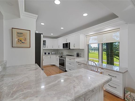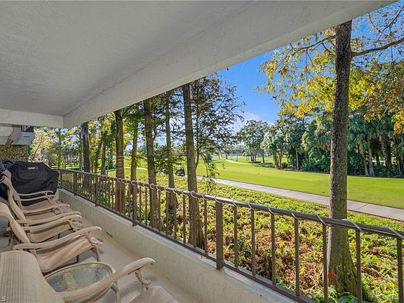 Experience stunning floor-to-ceiling views of the pristine 18th hole from a spacious wrap-around patio. Immediate full golf membership at Wilderness is available with the purchase of this property. In the generous living and dining areas, look to your left and enjoy a close-up view of all 18th-hole teeing areas; look ahead and to your right to experience a close-up view of a wondrous wilderness scene so close that you feel you can reach out and touch the leaves on the trees--- all seen from the comfort of your own living room and the safety of brand-new hurricane-rated sliding glass window walls. If you wish, fresh breezes slide open the window walls and enjoy fresh breezes through floor-to-ceiling brand new sliding door screens. This beautifully renovated, light-filled, open-concept home features a gourmet kitchen fully upgraded with granite countertops, stainless steel appliances, a tile backsplash, custom built-ins, including a built-in desk, white Shaker cabinetry, a floor-to-counter wine cooler, and plantation shutters in all the bedrooms. The residence also boasts an expansive master bedroom and bathroom with built-in cabinetry and luxurious showers with seamless shower doors. A full-size laundry room with a GE washer/dryer, plus a sink and ironing board. A versatile third bedroom can serve as a home office with custom-built-ins or be easily transformed into a third bedroom. This exceptional living space is equipped with a state-of-the-art TRANE heating, ventilating, and air-conditioning system and is located in an elevator building.Benefits include covered parking, an included golf cart with new batteries and seats, and a golf cart garage plus cabinetry for extra storage. Nestled within a 200-acre forest with stunning landscaping and mature trees along the roads, this gated paradise offers residents unlimited access to an 18-hole Arthur Hills course, five pools, four tennis courts, bocce, croquet, and a dog park. The new state-of-the-art clubhouse adds to the amenities. Just minutes from the vibrant shopping, pristine beaches, and dining options of 5th Avenue and Old Naples, this exceptional condominium provides a luxurious and leisurely lifestyle. Purchasing a Wilderness Country Club membership is required and easily accessible to enhance your living experience.