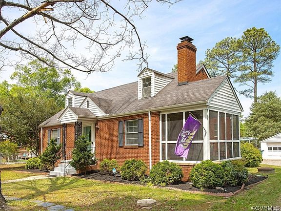 Charming ALL BRICK Cape in Chamberlayne Farms (in Henrico County, very close to Hanover Co. line). This home features 4 bedrooms, 2 full baths & hardwood floors throughout. FULL UNFINISHED WALK-OUT BASEMENT IS HEATED & COOLED (HEAT PUMP). *OVERSIZED 2 CAR GARAGE W/ 2 INDIVIDUAL CAR BAYS HAS IT'S OWN HEAT PUMP (IS HEATED & COOLED)! Light-filled family room w/ wood burning fireplace leads to cozy, screened side porch. The kitchen has updated counters & stainless appliances (dishwasher replaced 2021, oven replaced 2019) and opens to the formal dining room. Primary bedroom + 2nd bedroom w/ full bath on first level. Two additional bedrooms + full bathroom on second level. First floor heat pump replaced 2018. Hot water heater replaced 2023. Interior cast iron sewer line AND sewer line to street have been replaced w/ PVC. Whole house painted-2020. LARGE .42 acre yard, rear is fully fenced & great for entertaining. The driveway offers an abundance of parking. Centrally located with easy interstate access, quick drive to downtown Richmond, Hanover, west end. A LOT of space for the price.