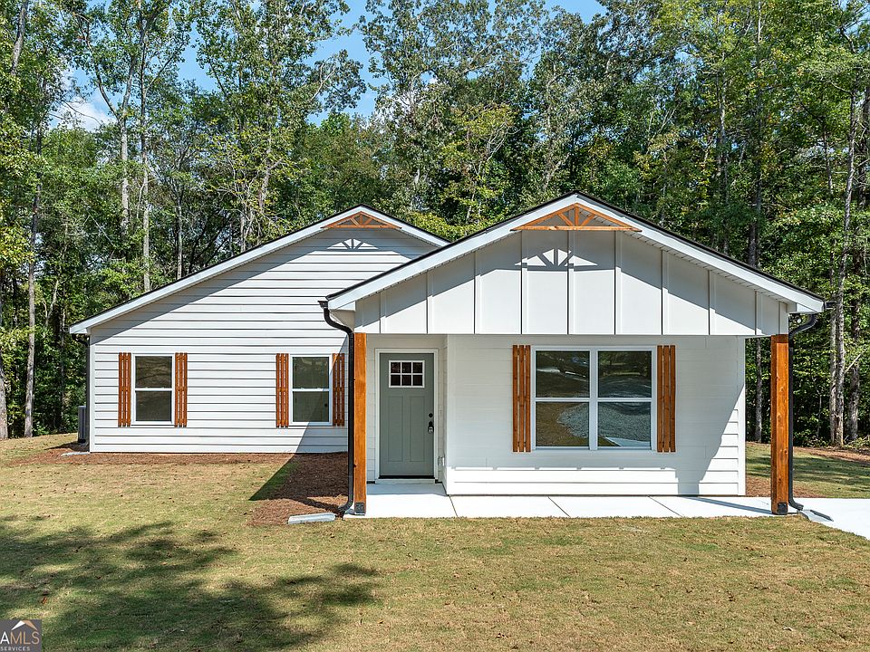 Eligible for 100% USDA financing! Welcome to your brand-new retreat in a serene lake community. This 4-bedroom, 2-bath ranch home sits on a private 2-acre lot, in a peaceful 18-acre community lake -famous for its Largemouth bass fishing and quiet charm. Inside, you are greeted with an open-concept design. The kitchen is highlighted with timeless shaker cabinetry, granite countertops, stainless steel appliances, and a spacious island that flows into the family room. The primary suite offers a double vanity, generous walk-in closet, and a glass-enclosed designer-tiled shower. Thoughtful details throughout include modern light fixtures, durable luxury vinyl plank flooring, carpeted bedrooms and stylish 2-panel doors. Outside, cedar wood accents, bold black gutters, and a board-and-batten craftsman facade gives this home beautiful curb appeal that truly stands out. With 2 acres of space, you'll enjoy both privacy and beauty-plus neighborhood amenities like shared picnic spots and fishing areas, perfect for weekends with family and friends. Don't miss your chance to own new construction in this one-of-a-kind lake community. This is where peaceful living meets modern comfort!