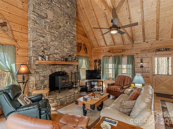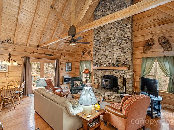 Look no further than this immaculate log home situated on over 9 acres south of Brevard. A soaring rock fireplace (with insert) and exposed wood beams welcome you inside the living room of this lovingly cared for mountain getaway. The main floor also offers a spacious kitchen and dining nook, one bedroom and one full bath plus laundry. Upstairs, you'll find another bedroom with en suite bath and private balcony. The Line Runner Ridge community features a community lake, main gravel roads maintained by an HOA and easy access to NC or SC. This rare find comprises the best of mountain living that's ready for you and a new chapter of life! Come and experience one of America's Coolest Small Towns of Brevard, NC and experience some of the best hiking, biking and trails in the southeastern US.