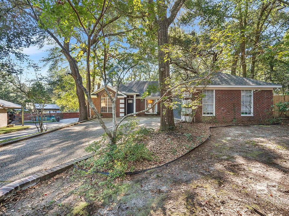 Spacious Lake Forest home with in-ground pool! This 3 bed, 2 bath home has been completely remodeled and sits on a cul-de-sac! LVP flooring and a neutral paint throughout. Living room features a vaulted ceiling and fireplace. Kitchen has green painted cabinets, granite counters, stainless appliances to include electric cooktop, double ovens, microwave, dishwasher, refrigerator, eat-in kitchen and more. Separate dining room. Primary bedroom en-suite offers a large walk-in closet, freestanding soaking tub, separate shower and a vanity with 2 sinks. 2 Guest bedrooms share the hall bathroom with a tub/shower, toilet and vanity. Big Laundry room. Private backyard oasis with fenced pool area. Double car garage. As part of the HOA, you can enjoy all of Lake Forest's amenities to include golf, horse back riding, tennis courts, 3 pools, playgrounds, and more! Close to I-10 for easy access to Mobile, Pensacola, and Gulf Shores. Buyer to verify all information during due diligence.