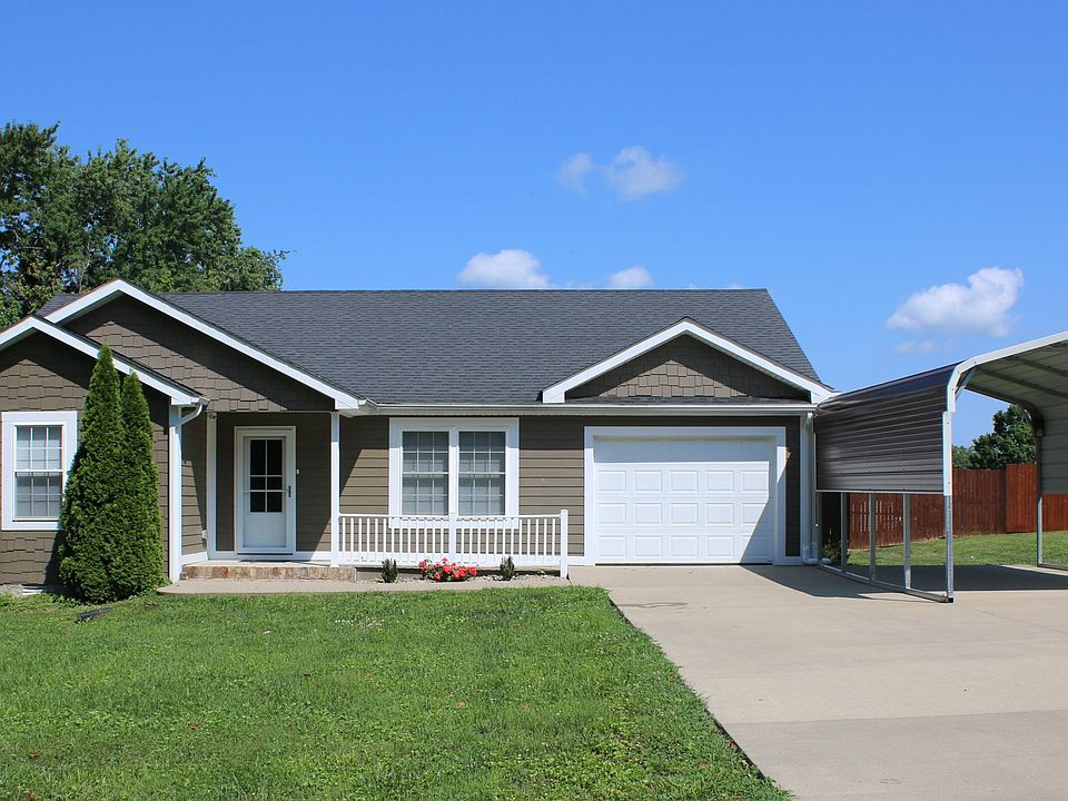 CIRCA 2016 RANCH close to downtown. Like NEW 3 bedroom, 2 full bathroom ranch with Vaulted Ceiling is freshly painted and ready to move in condition. The home features Beautiful engineered Hardwood floors throughout, except for bathrooms where there is ceramic, and granite countertops. The Kitchen boasts Stainless Steel appliances that stay with home, Granite countertops, Island overlooking the dining room and walk in pantry. Conveniently located Laundry closet with washer and dryer. All bedrooms offer ceiling fans, blinds and Walk IN closets. I car attached garage PLUS 1 car carport, Concrete driveway and access to the 1/3 acre lot and backyard with shed. Plenty of room to build additional garage or create your outdoor oasis. Within walking distance to downtown and shopping.