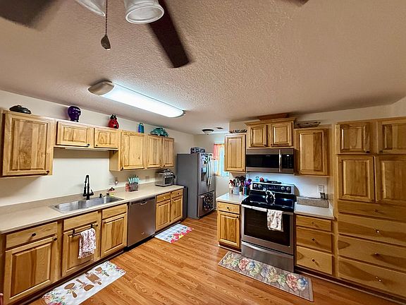 Spacious & Move-In Ready Home with Flexible Layout! Step inside this beautifully maintained home featuring great-sized rooms, an open-concept living area, & a split-bedroom layout for added privacy. The versatile flex space can serve as a 4th bedroom, home office, or additional living area—complete w/ a stylish barn door for added function and charm.The huge kitchen is a cook's dream w/ like-new appliances, & walk-in pantry offering plenty of storage. All bedrooms feature walk-in closets, & both bathrooms include convenient tub/shower combos. Updated plumbing fixtures throughout! Enjoy year-round comfort w/a recently cleaned and serviced HVAC system. The utility area includes a wash sink & extra storage options.Outside, you'll love the covered porch, fenced yard, & beautiful landscaping w/a hydrangea tree & rose bushes. Addt'l highlights include: Two storage buildings (one like new) Outdoor light combo w/remote, Lever handles throughout, This property truly combines comfort & function.