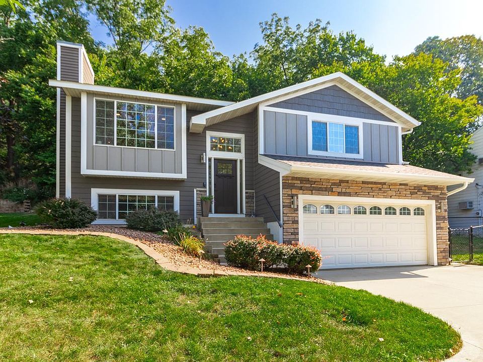 maintenance free back yard, privacy, deck, hot tub, shed and even a special dog space. Updated appliances and mechanicals. Two car garage with Gladiator cabinetry. Concrete driveway has turn around spot or extra parking pad.
