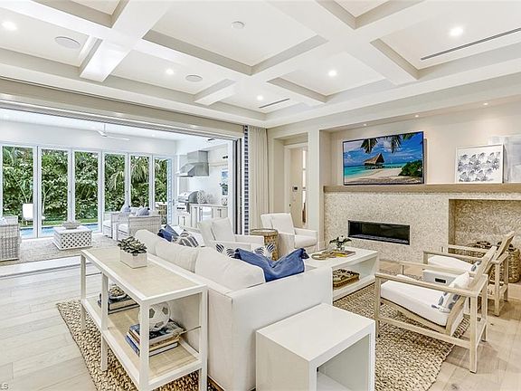 Welcome Olde Florida-style living back to Olde Naples with the latest masterpiece built by Griffin Builders. This 6-bedroom, 8-bathroom home, located steps away from our white sandy beaches and the Gulf of Mexico, is a sight to behold with its Olde Florida architecture and coastal interior design. You'll be amazed upon entry, immediately noticing the glass-enclosed, fully insulated wine room with an array of decadent options. Your eyes will take in the breadth of space that makes up the great room, kitchen, and dining room. The luxury kitchen features 2 kitchen islands, dual sinks, and Wolf & Sub-Zero appliances, while the great room features a gas fireplace. Unique to this home is the modernized Florida room, which blends seamlessly with the rest of the home, that also opens up to the relaxing outdoor space with a tranquil pool and spa, deck jets, and lush landscape. Walk up the stairs, or use your private elevator, and find a comfortable loft featuring a wet bar and gorgeous Pecky Cypress walls blending into a white paneled ceiling. The loft is at the center of 4 en-suite bedrooms, while the fifth en-suite bedroom and the master suite find residence on the ground floor.