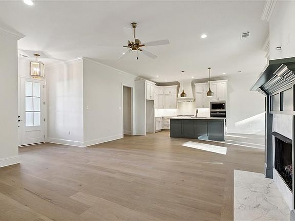 This new construction home by KPM Construction is ready for new owners! Fabulous home with 4 bedrooms/2.5 baths; separate office; beautiful kitchen with contrasting island, Quartz countertops, porcelain farm sink, walk-in pantry; center wall fireplace in den; wood floors in all living areas as well as all bedrooms; primary suite with tray ceiling, spa-like bath including stand-alone tub, separate shower, dual vanities and large walk-in closet; guest bath with dual vanities; mudroom area off garage entrance; laundry room with upper & lower cabinets; brick covered patio overlooking private yard that backs to 50 ft of greenspace. Flood zone "C". Another beautiful KPM Construction home!