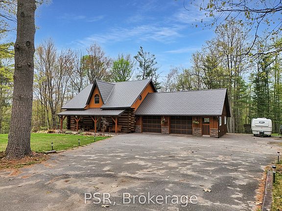 Welcome to this truly exceptional, custom-built log home, lovingly maintained by its owners. Nestled at the end of a quiet street on nearly 1.5 acres, this property offers wonderful privacy and timeless Muskoka charm. Featuring 3 bedrooms and 3 fully finished levels, including a bright walkout basement, this home showcases quality craftsmanship throughout, from the beautiful round log construction to thoughtful updates like a steel roof in 2015. The property also includes a double car garage, a spacious paved driveway, and two handy storage sheds. Inside, youll immediately feel the warmth and character of the impressive log interior. The main floor offers a seamless flow from the inviting living area with beautiful wood burning stone fire place to the large back deck, perfect for outdoor dining and entertaining. Upstairs, youll find three comfortable bedrooms, while each level of the home is conveniently served by a generously sized bathroom. The lower level walkout basement provides excellent additional living space, featuring a cozy rec room, a home office, and direct access to the private backyard. Whether youre relaxing indoors or enjoying the natural surroundings, this home delivers a lifestyle of peace, comfort, and character. All of this, just minutes from launching your boat on beautiful Kahshe Lake and only 10 minutes to the Town of Gravenhurst, where you'll find shopping, dining, and everyday essentials plus easy access to explore the open waters of Lake Muskoka. If you love log homes, this one will exceed your expectations.