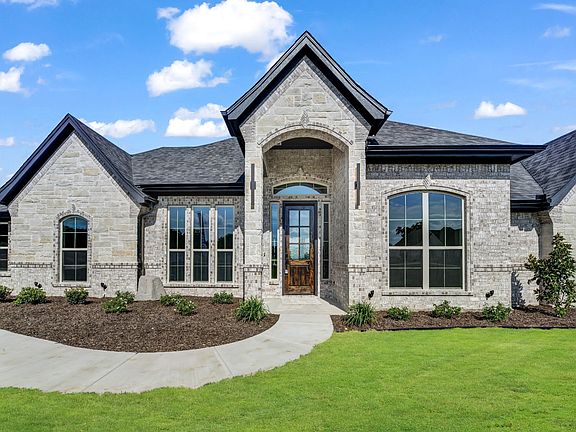 Charming LBK Home on 1 acre tract in Springtown ISD. This 2297 sq ft home has 4 bedrooms and 2 full bathrooms with a study. This home has an open floor plan with split bedrooms. Large kitchen with ample cabinet space, large eat at island, quartz countertops, decorative light fixtures, and under mount lighting.Large living room has ceilings with beams, stone fireplace, large windows allowing great nature light. Large primary bedroom with primary bathroom boasting double vanities, separate shower and tub, and large walk in closet. Nice sized spare bedrooms with large closets. This homes has a 2 car garage with side entry and covered back patio. LBK Homes has all exterior walls spray foamed and CAT 6 hardwiring to all rooms for tv and streaming. Builder to pay title and survey.ASK ABOUT INCENTIVES. The pic is the same home from a different subdivision.