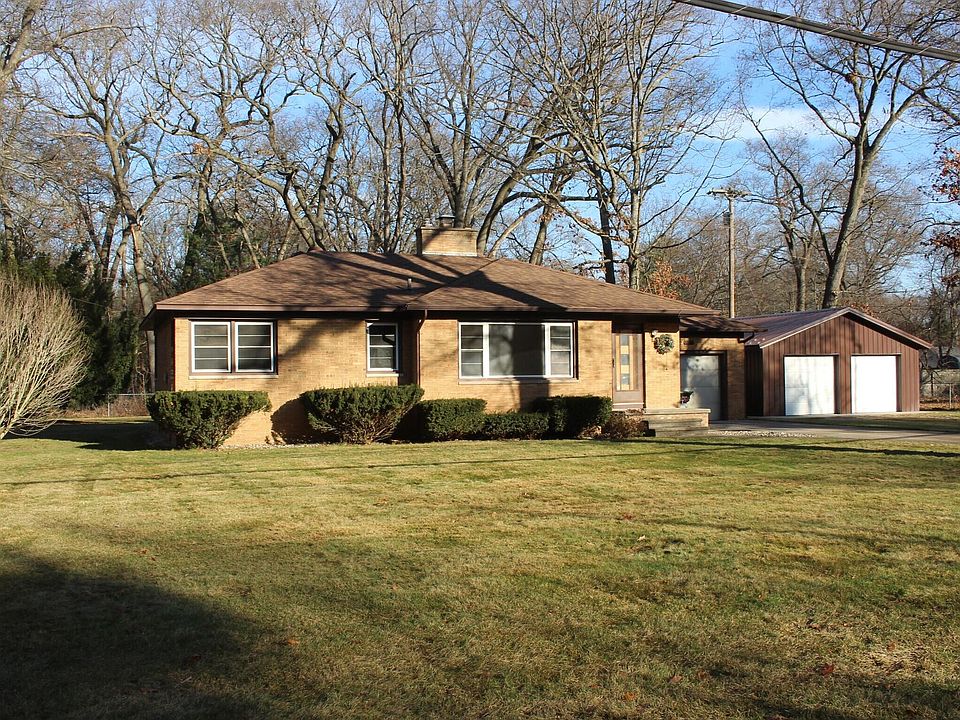 Brick Ranch with 2 bedrooms, 1 bath with full basement, partially finished. 2 Fireplaces 1 upstairs and 1 downstairs. 1 stall attached garage and 2 Stall Detached garage. Large lot close to Meijers and Highway.