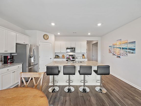 Welcome to this stunning 4-bedroom, 2-bath home in desirable Kingston Bay! Step inside to find a bright, open layout featuring LVP flooring throughout the main living areas and cozy carpet in the bedrooms. The heart of the home boasts a chef’s kitchen with granite countertops, a kitchen island and breakfast bar, a full pantry, and a dining area that opens through sliders to your private outdoor retreat. The spacious master suite offers a large ensuite bathroom with a double vanity, walk-in glass shower, and a generous walk-in closet. Additional highlights include an attached 2-car garage with epoxy floors and fresh paint, gutters around the perimeter of the home, and abundant windows with blinds that fill the home with natural light. Enjoy outdoor living on the screened porch with a ceiling fan, leading to an extended patio with a retaining wall and a fully fenced backyard overlooking a lush wooded view. This move-in ready home also comes complete with washer and dryer included. Don’t miss your chance to own this beautiful Kingston Bay gem!