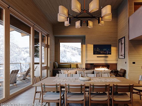 Perched above Camber Lane, the Fred is a Scandinavian-inspired, free-standing cabin that celebrates clean design, functional luxury, and sweeping mountain views. Spanning three levels, the four ensuite bedrooms are complemented by multiple outdoor living spaces that blur the line between home and high alpine adventure. The main entry level welcomes you through a covered outdoor vestibule with dedicated ski storage, thoughtfully connecting the single-car garage to the home's central living space. Inside, a generous gear room offers benches, custom cubbies, and an integrated boot and clothing-drying system—creating an effortless transition from mountain pursuits to the comfort of home. An open kitchen and living area anchor the main level, framed by a dramatic wall of glass that draws the Tetons and Fred's Mountain into view. A full-width covered deck extends the living space outdoors, ideal for relaxed seating or grilling after a day on the slopes. The lower walk-out level features the primary suite, a bunk-style guest suite, and a custom Finnleo sauna positioned between theman invitation to unwind. A spacious recreation and media room with a wet bar, game table, and access to a covered deck and outdoor spa completes this floor, offering the perfect balance of fun and serenity. On the upper level, two additional king suites capture elevated mountain vistas, creating private sanctuaries with an unmistakable sense of place. At once refined and unpretentious, The Fred embodies the essence of Confluencepurposeful design, mountain functionality, and a seamless connection to the natural world that surrounds it.