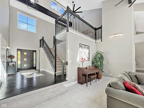 Step into this beautifully updated cedar-and-stone contemporary home and prepare to be impressed. Flooded with natural light and thoughtfully updated, this residence blends elegance and comfort while delivering unmatched lakefront living. Entertain outdoors effortlessly enjoying beautiful lake views from a new Trex deck, a private dock, and cozy fire pit perfect for both intimate evenings and gatherings. Enjoy a thoughtfully redesigned interior with many high quality features. This home includes a striking two-sided Brown County stone wood-burning fireplace anchoring the spectacular great room and the office. The kitchen is a chef's delight, with custom black walnut cabinetry, a six-burner gas cooktop, granite countertops, stainless steel appliances, a large walk-in pantry, and charming banquette seating in the breakfast area. The primary bathroom offers a tranquil retreat, complete with a new walk-in shower and a generous soaking tub ideal for unwinding after a busy day. A finished lower-level showcases an inviting family room and a wet bar with built-in wine storage to enhance entertaining. Additionally, the basement features a multi-use room, as well as a bedroom with a full bathroom. Residents enjoy full access to Tipton Lakes' year-round amenities, including three connected lakes, a marina and beach, tennis courts, walking trails, playgrounds, and seasonal programming. A three-car garage adds both convenience and value. Truly, every detail of this home was selected to deliver both style and comfort in a lakefront setting you'll love calling your own.