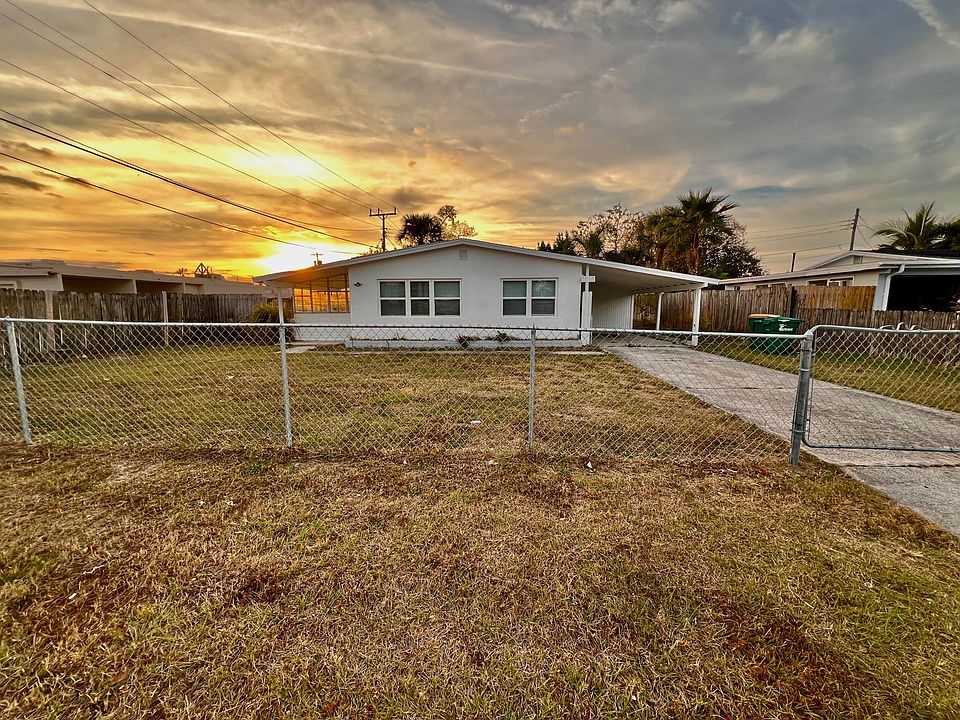Three bedroom, One Bath with One Florida Sun Room, Car port and Laundry room. Entire house is connect with on the grid 5K Electric Solar panels. Fenced and gated front yard and backyard.