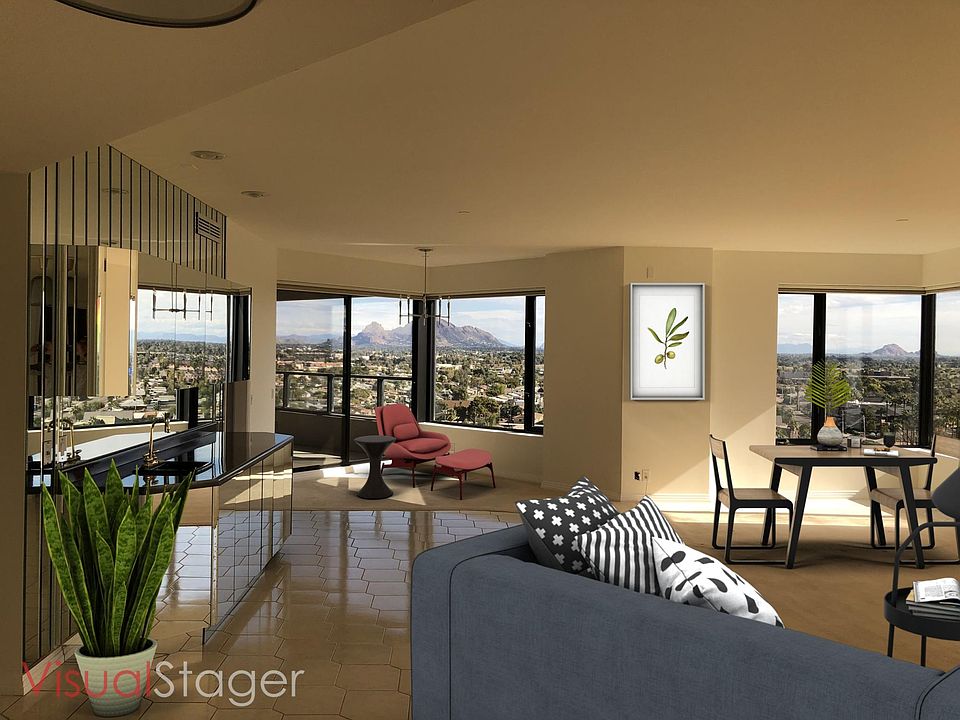 This 16th flr penthouse/loft style apartment has 360 degree views over the entire valley, & the word breathtaking does not even do it a justice. Magazine has featured this home in its 20101 edition & says, This 'white hot' domicile is immaculate & meticulously executed. This once in a lifetime offering has all the comfort & sophistication of a true New York City Penthouse, reminiscent of the grandest of contemporary style living, right in the heart of Phoenix overlooking the Phoenix Country Club. Totally redone masterpiece is the largest of its kind in the entire valley. Covering an area of 6200 sq.ft, the apartment boasts 3 huge balconies, providing the perfect blend of indoor-outdoor living only available in an apartment of this size. Full service(attended lobby, concierge, etc. (Internet 5687158-3/4/2012)
