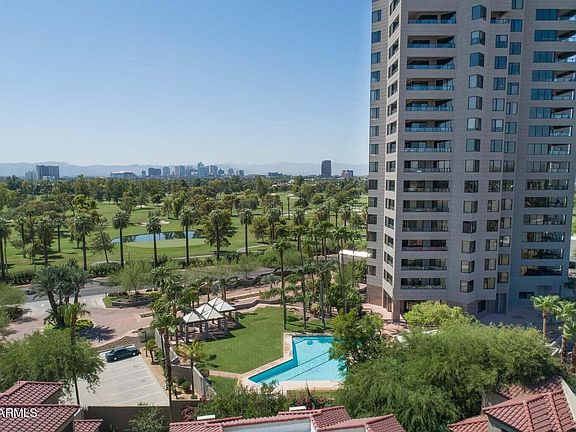 Welcome to Crystal Point, Phoenix's premier high rise community. Enjoy living above the bustle on the 15th floor w/ unmatched 180* views of the city, beautiful AZ sunsets & Camelback Mountain. Upon entry the bright, open living area is perfect for entertaining and the full wall of windows won't disappoint! This stunning split floor plan also boasts a spacious terrace w/ fireplace for cool evenings. Efficient gourmet kitchen w/new GE Profile dishwasher, custom built full overlay European style cabinetry, slab granite countertops, built in sub zero refrig/freezer, even views from the kitchen sink! Generous size primary suite has dual walk in closets (one was prev office space), walk in shower, his & hers vanities, amazing jacuzzi tub, built in cabinetry and of course stunning views. Resort like amenities include Olympic size heated pool & spa w/ gorgeous cabana area, full fitness facility w/ men & women's locker rooms, 24 hour security & doorman, concierge service, underground garage, caterer kitchen off conference area and even guest suites!
