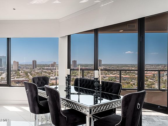 BREATHTAKING PANORAMIC VIEWS & ICONIC ARIZONA SUNSETS! Experience elevated living at Crystal Point in this stunning 17th-floor sub-penthouse boasting 3 bedrooms, 2.5 baths, and 3,426 sq ft of exceptional design. This completely remodeled residence features elegant marble floors and an open, light-filled space with walls of windows that frame panoramic views of the entire Valley, including the Phoenix Country Club golf course, midtown and downtown skylines, Piestewa Peak, Camelback Mountain, and more.