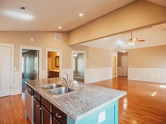 Inside, you'll find an open floor plan featuring vaulted ceilings that add a touch of elegance and plenty of natural light. The kitchen boasts a large island with granite countertops and a double sinkideal for easy meal prep and entertaining. Stainless steel appliances and ample cabinet space complete the chef's kitchen.